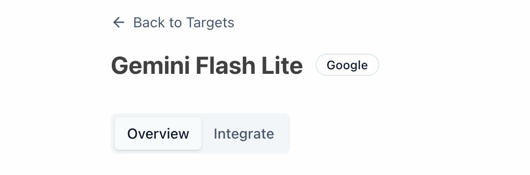 To integrate the guardrail into your application, select Guardrails > Targets. Once you select the target that you've attached your adaptive guardrail to, you should see an integrate option right under the name of your target.