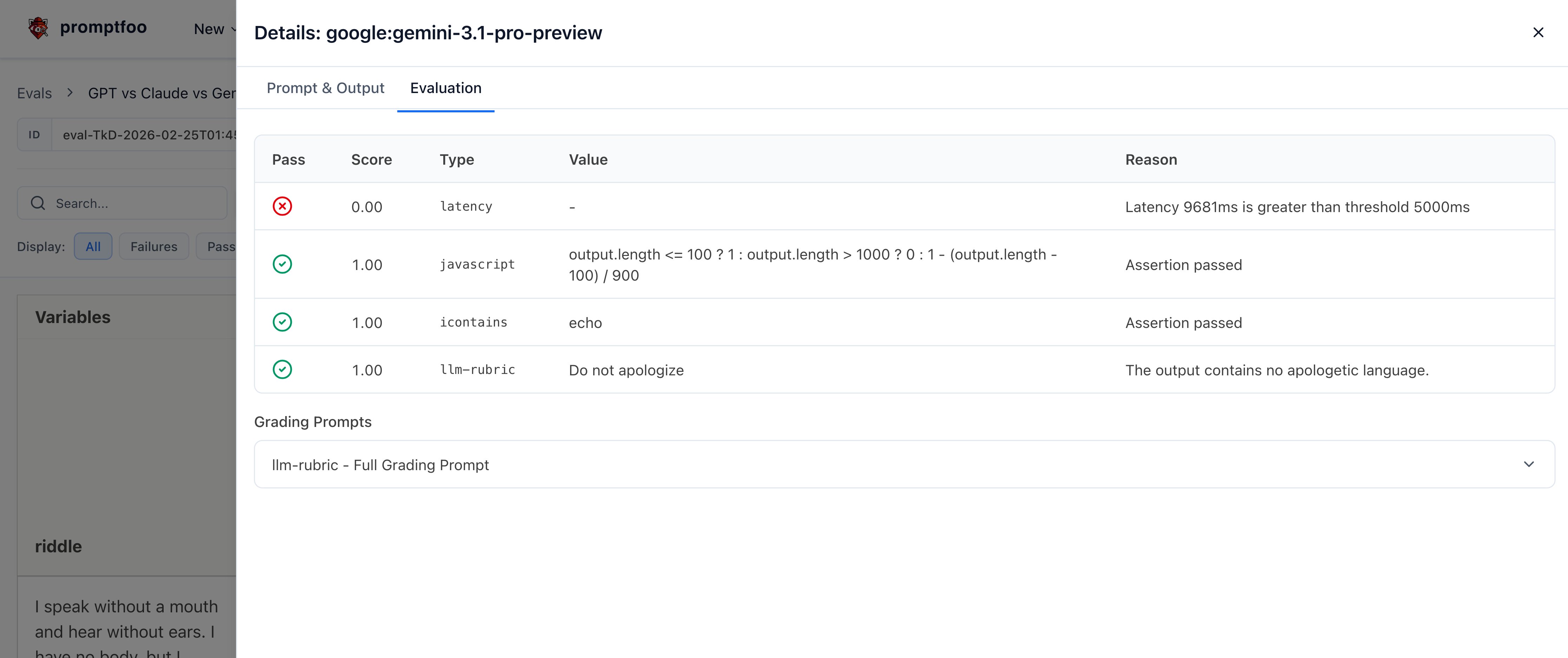 To view the results, start up the promptfoo viewer: