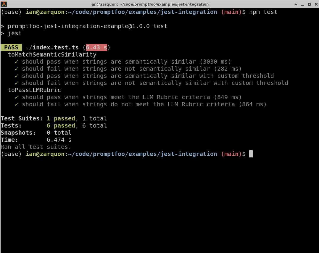promptfoo can be integrated with test frameworks like Jest and Vitest to evaluate prompts as part of existing testing and CI workflows.