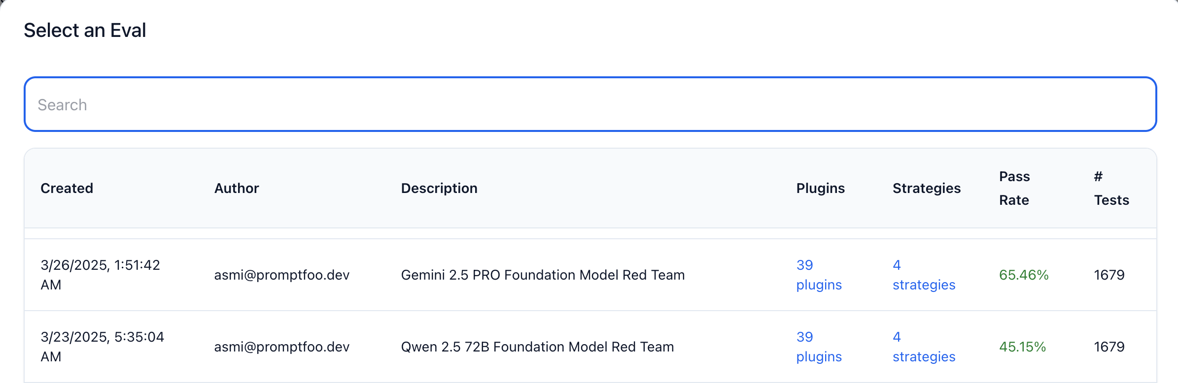 If this model hasn't been listed in Promptfoo's model directory, you can email results to inquiries@promptfoo.dev for inclusion on the promptfoo.dev/models page.