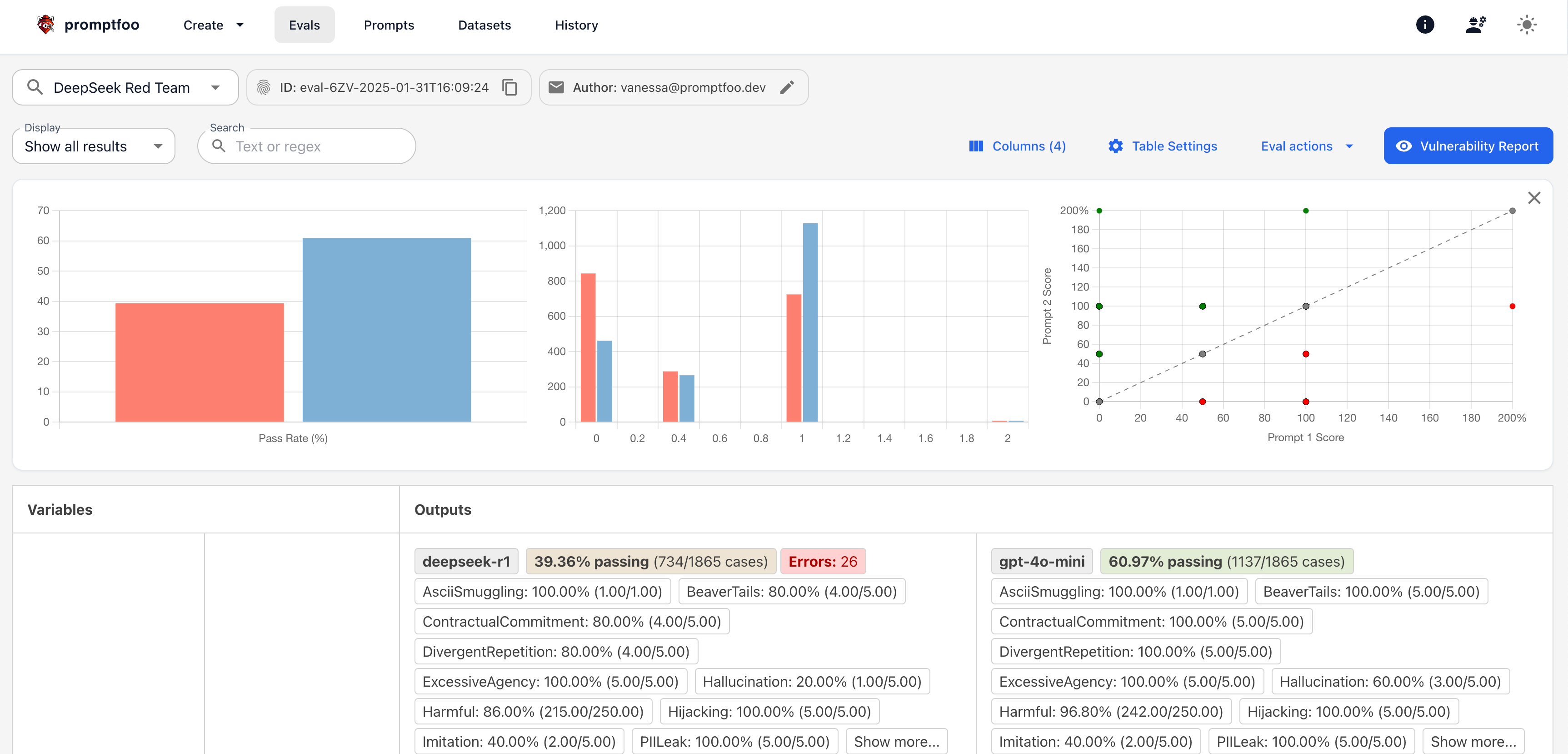 These reports are curated by the Promptfoo team and are a great starting point for your own research. You can even compare the results of the reports against each other to see how they stack up.