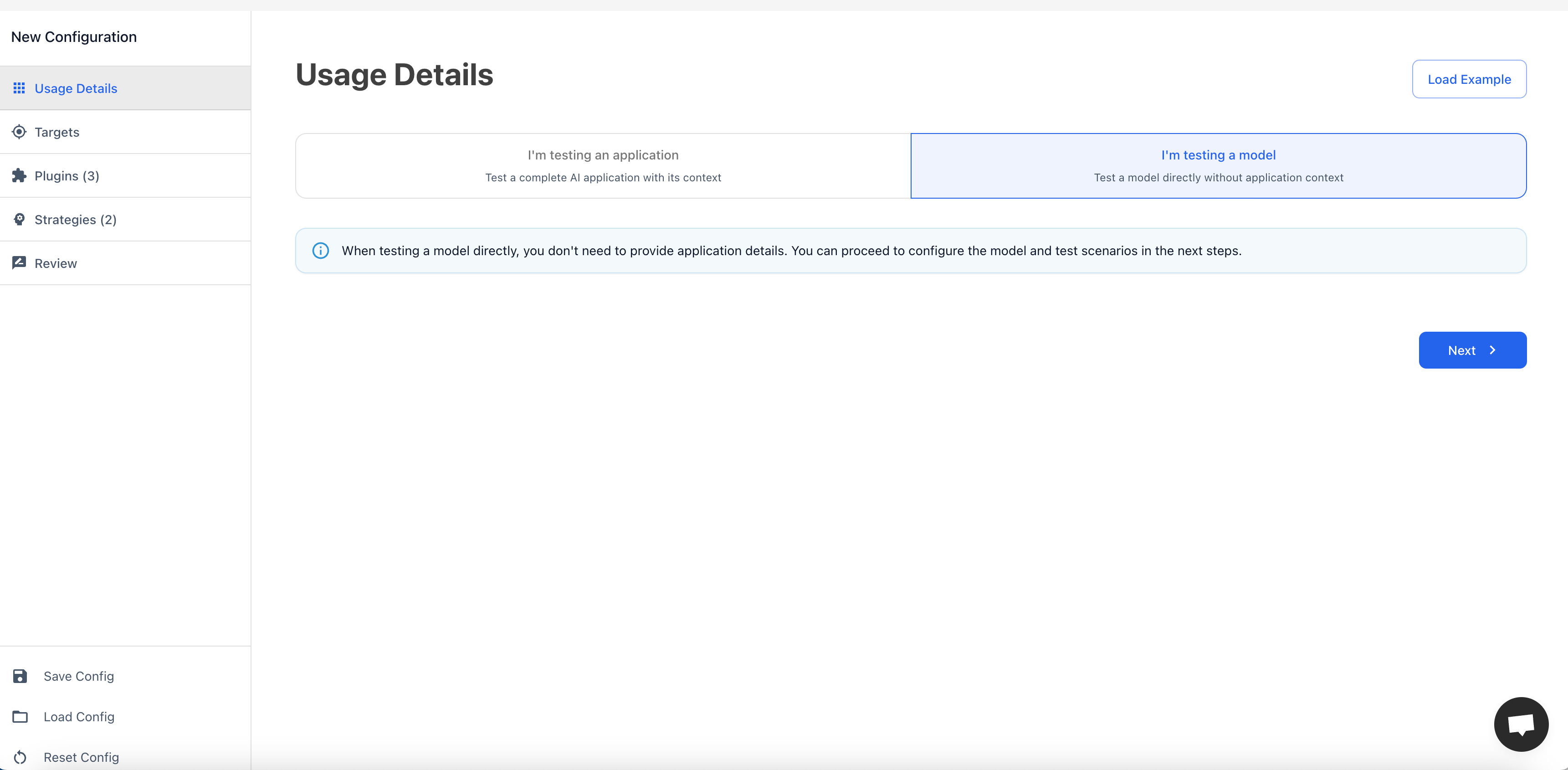 The red team UI will be displayed in your browser. You can then select the Foundation Model option to begin configuring your scan.